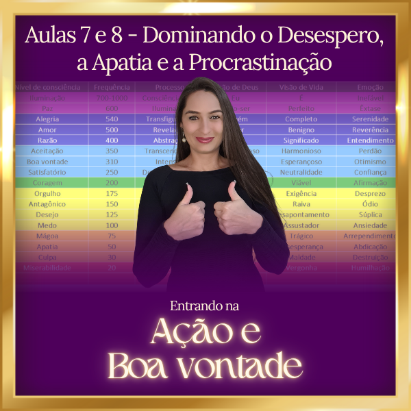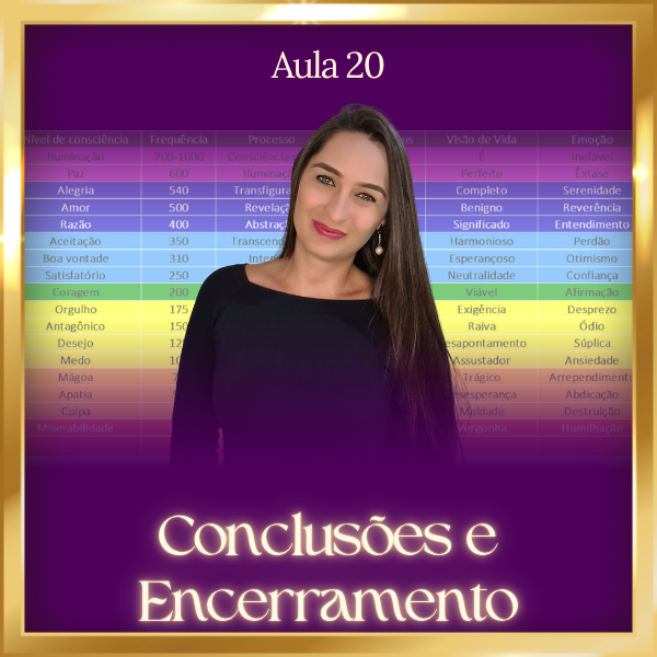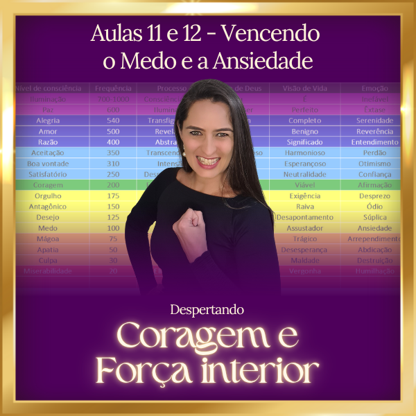 Unindo ciência, inteligência emocional, consciência e muito acolhimento, as etapas são inspiradas na Tabela de Consciência de David Hawkins (livro Força x Poder de David Hawkins) e mostra como sair dos estados emocionais que adoecem e aprisionam — como vergonha, culpa, mágoa, medo, raiva — para acessar níveis mais elevados de consciência e liberdade interior, como coragem, amor, autoestima, paz interior e propósito.